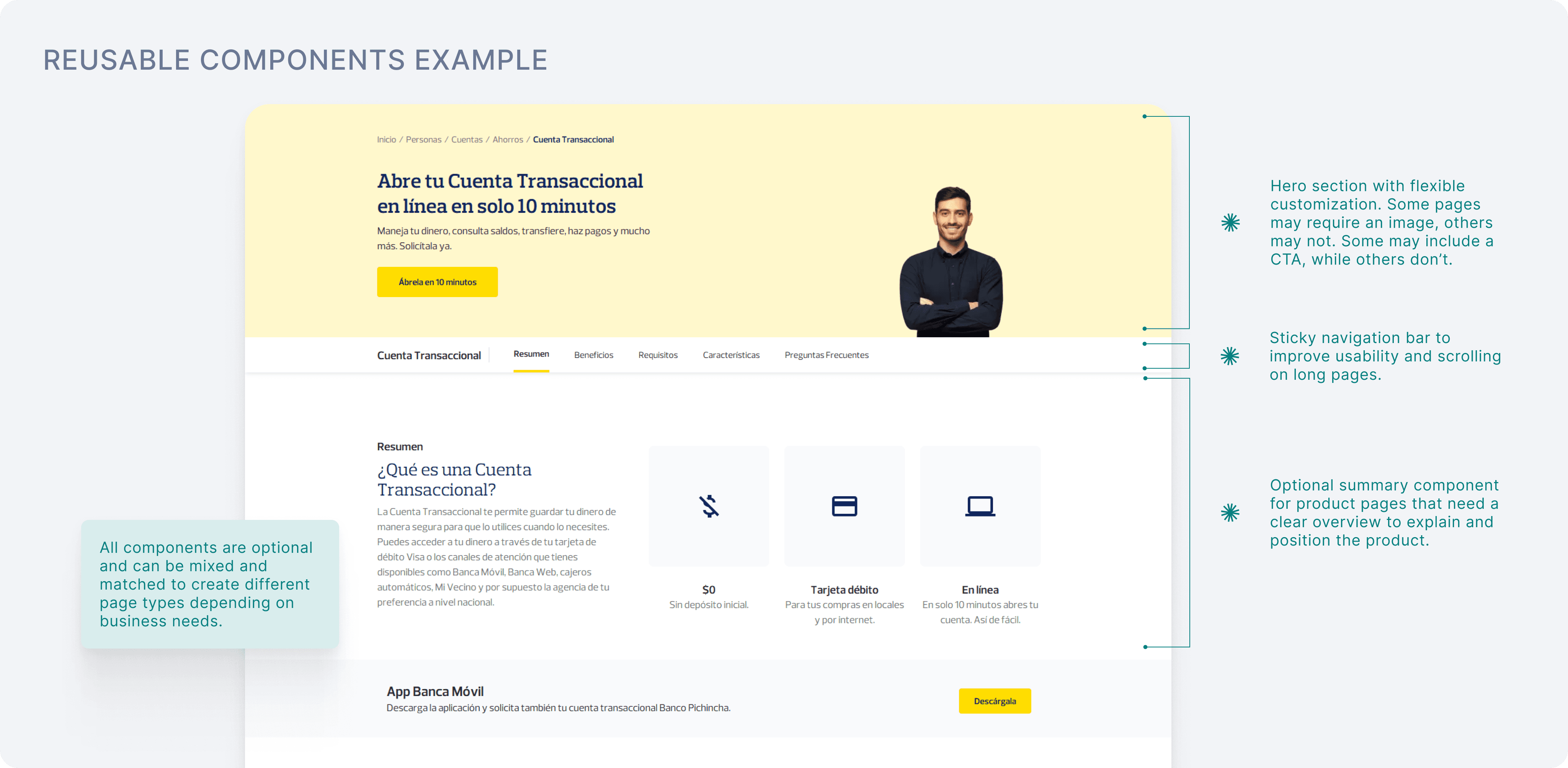 Those sessions were important because the component system could not be created in isolation. I used them to pitch early design directions, test whether the components worked with real content, gather feedback from different teams, and make sure what I was proposing could support the bank’s needs.